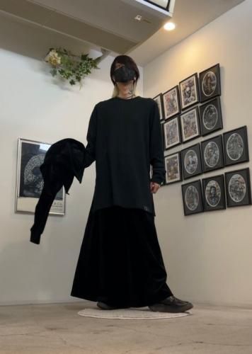 【STAFFコメント】コットン86%、ポリエステル13%、ポリウレタン1%で適度な透け感のあるラッセル編みのサイドスリットロングカットソー。独自な素材感でメイン・レイヤードで活躍します。袖口にサムホールを配置。