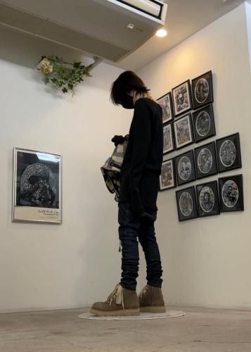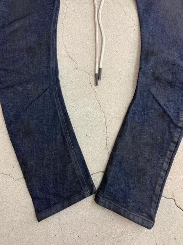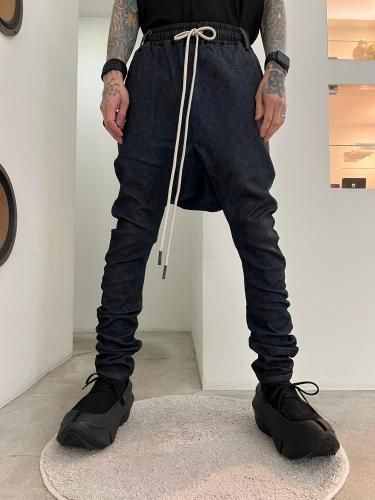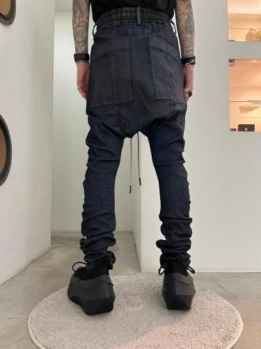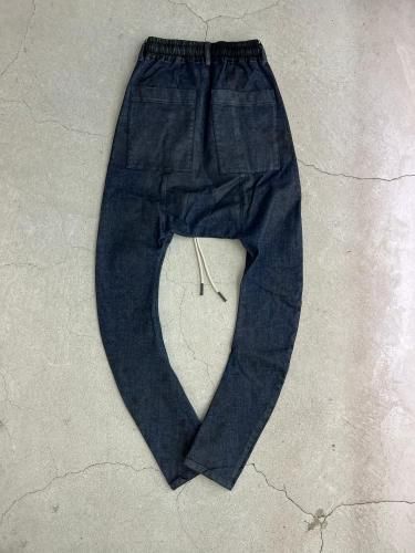 【STAFFコメント】ブランド定番シルエットのサルエルスキニー。かなり深めに取った股上と細めのシルエットが特徴的。ウエストはイージー仕様で長いドローコードが付属。タイトシルエットですが非常に伸縮性の高いストレッチデニムなのでストレスを感じない穿き心地。全体に樹脂コーディング加工を施しています。
