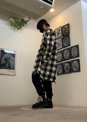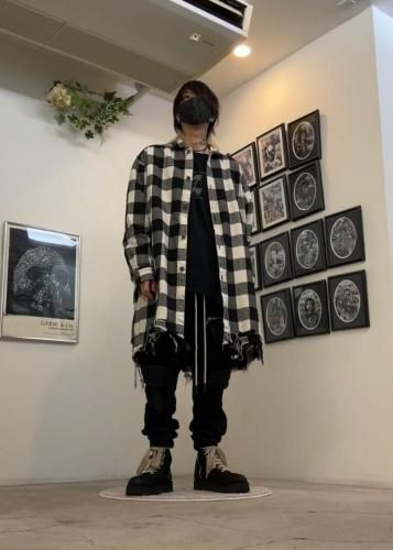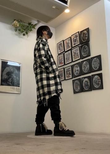A.F ARTEFACT / Damage Check Pattern Long Shirts / Black×White