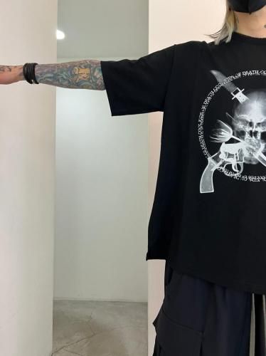 過去のグラフィックをリバイバルしたデザインでレントゲンモチーフのスカルヘッド柄をプリントしています。