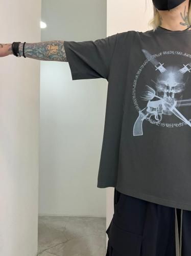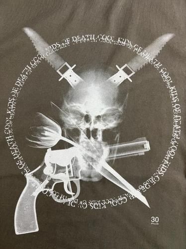 過去のグラフィックをリバイバルしたデザインでレントゲンモチーフのスカルヘッド柄をプリントしています。