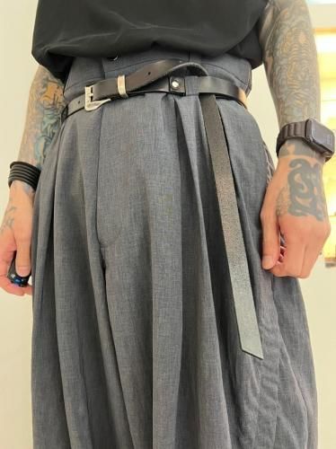 伝統的な栃木レザーを使用したフルベジタブルタンニンレザーのレザーベルト。決め細やかな栃木レザーは、使い込むほどに艶が増し、経年変化を楽しめます。3.5mmの厚みを持つレザーは、熟練の職人によって1本本丁寧に磨き上げられ、美しいコバが際立っています。重厚感のあるバックルパーツと、ベルトのバタつきを抑えるスリットパーツがデザインのアクセントとなり、機能性と美しさを兼ね備えています
