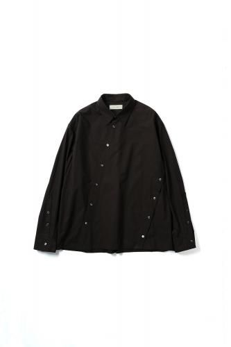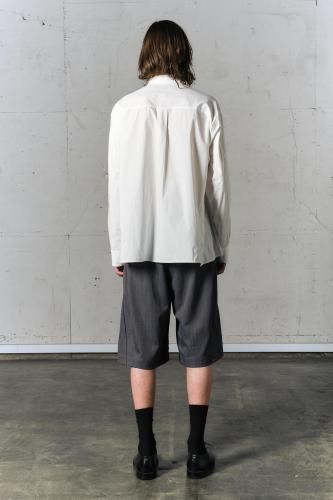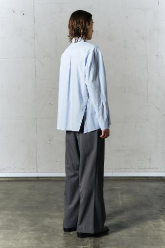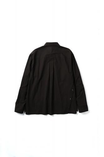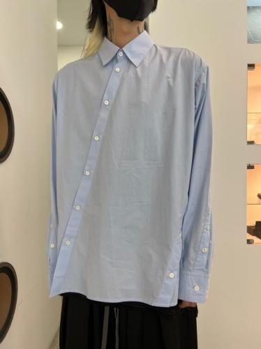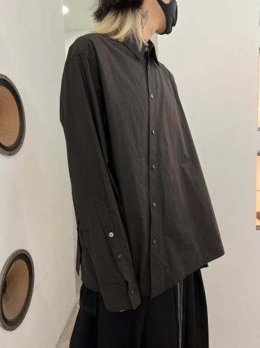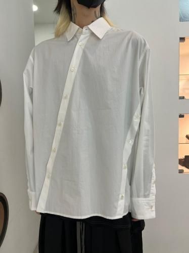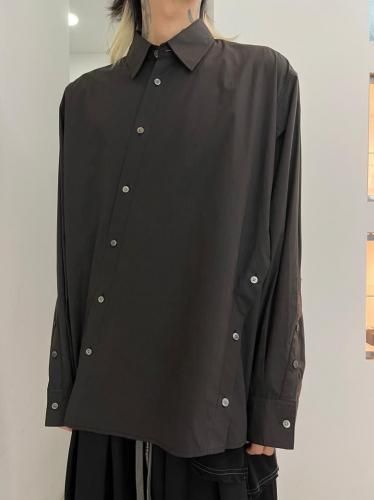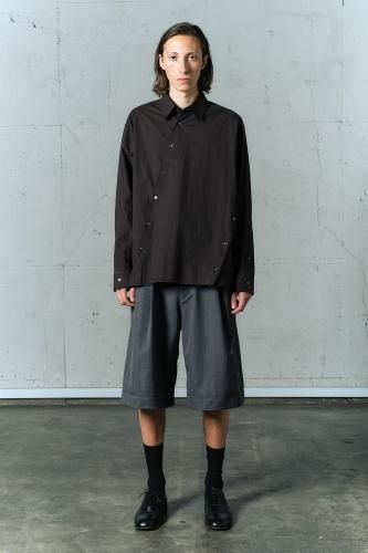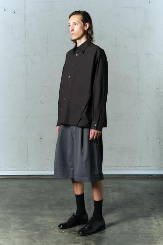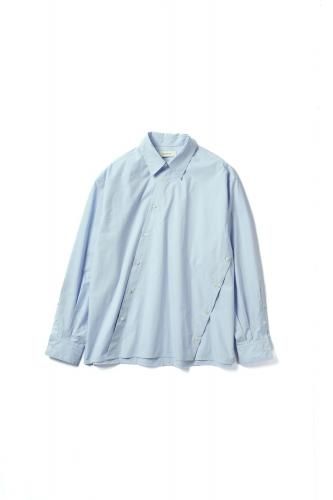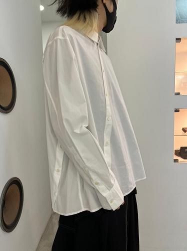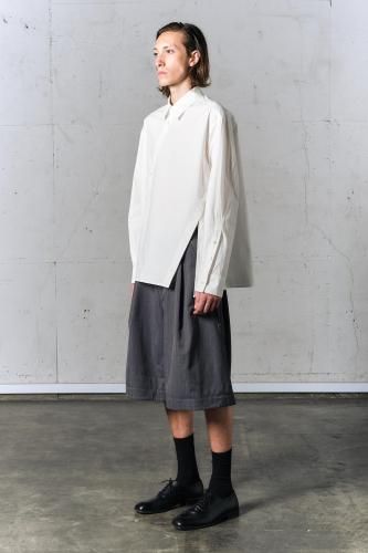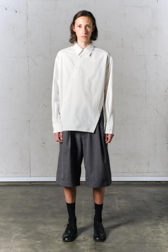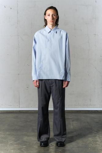高密度コットンブロード素材を使用したレギュラーカラーシャツ。前開き・脇開き・袖開きをねじるように組み合わせた、ユニークなデザインが特徴の一着です。そのまま着用しても、ねじれたラインが印象的なアクセントとなり、ボタンを開けて着ることで豊かなドレープが生まれます。"TWISTED"シリーズとのレイヤードスタイルもおすすめです。