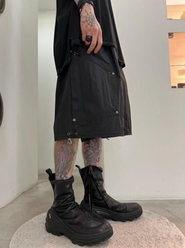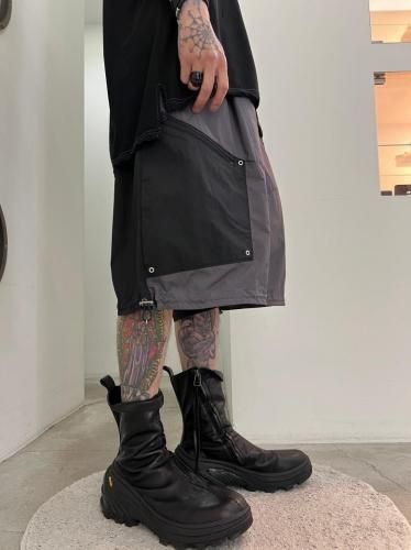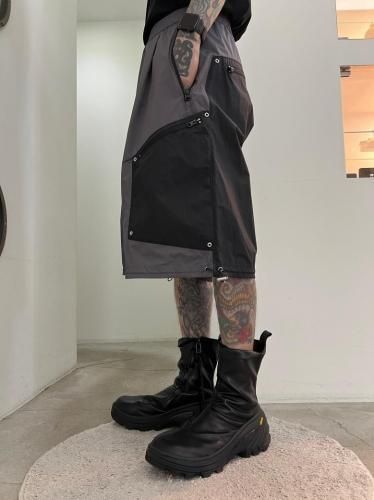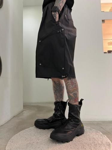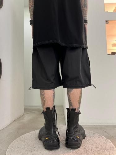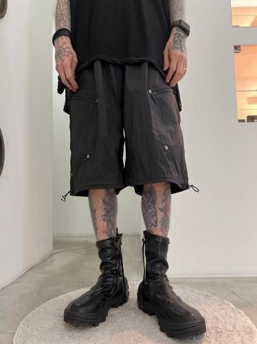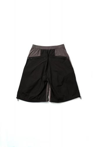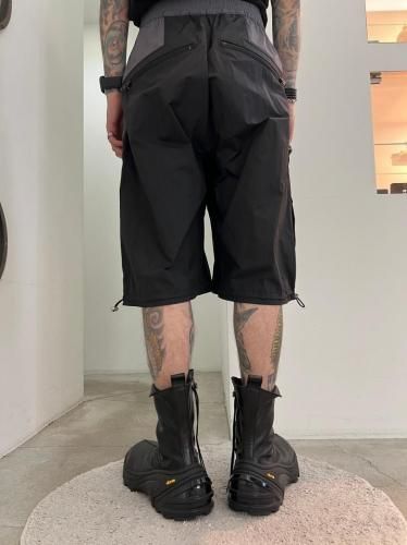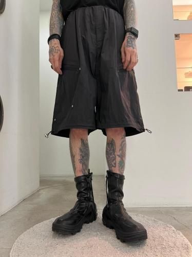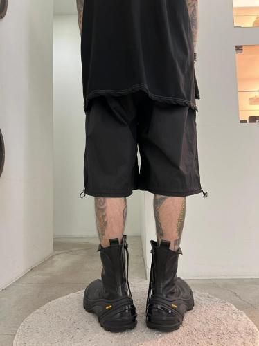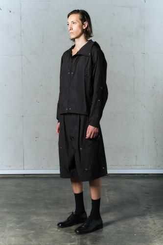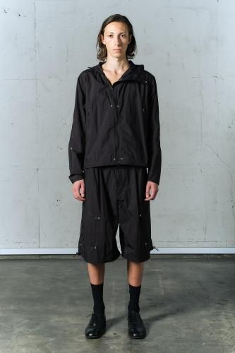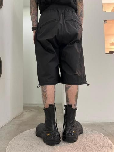 ハリのあるリップストップナイロン素材を使用したショートパンツ。アウトドアのディテールを取り入れつつ、ドレスパンツのようなエレガントなシルエットに仕上げました。ウエストと裾はスピンドルで調節可能です。