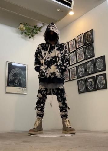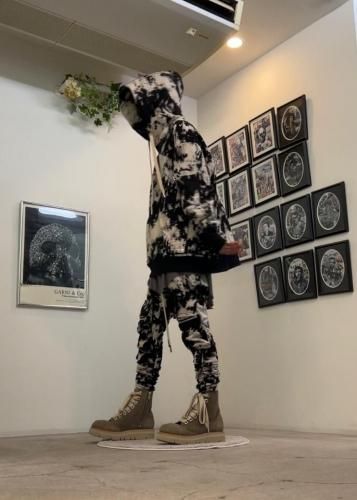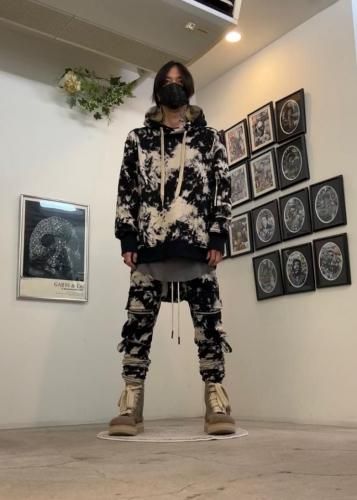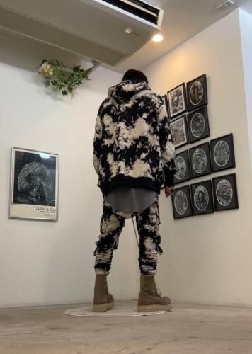 【STAFFコメント】独自なブラック×アイボリーのムラ染めを施した裏毛スウェット素材のサイドジップサルエルパンツ。毎回好評のスウェット素材のタイトフィットイージーパンツで両サイドにジップ付きのカーゴポケットとフラップポケットを配置したサルエルシルエット。タイトフィットながらにスウェット素材のイージーケアでストレス無く着用できます。ブランド特有のタイトシルエットで長めのレングスは膝から下をたるませる事で存在感が増します。