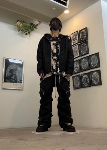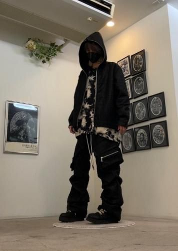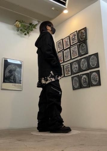 【STAFFコメント】ポリエステル×ナイロンのベースの混紡素材を使用したブーツカットタックカーゴパンツ。定番タックバギーデニムにカーゴポケットを配置し、膝から裾にかけて段違いにタックを入れ、独自なシルエット。カーゴポケットは立体フラップポケットにジップポケットを配置した2重ポケット。裾にはドローコードを配置し、シルエットの変化が可能。