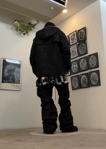 A.F ARTEFACT / Tweed Boots Cut Tuck Cargo Pants / Black