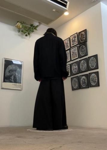 LAD MUSICIAN / WOOL GABARDINE WRAP PANTS / NANO BLACK