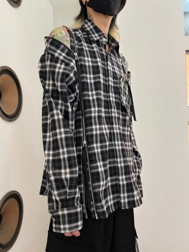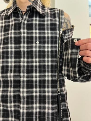 【STAFFコメント】ポリエステルベースのフランネル素材を使用したロングスリーブシャツ。肩からフロントの裾にかけて配置したファスナーで様々な着こなしを楽しめられます。フロント左の胸ポケットはボタンで開閉可能なダミーポケット。
