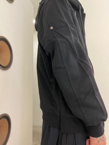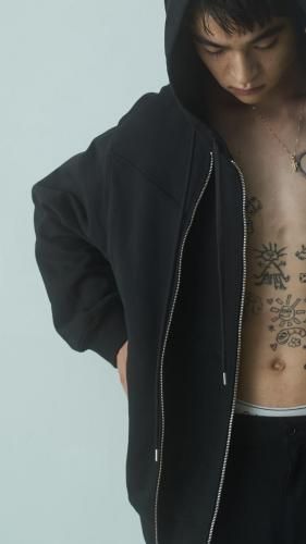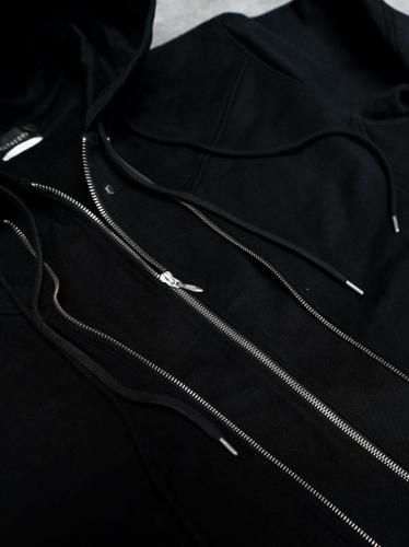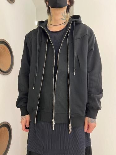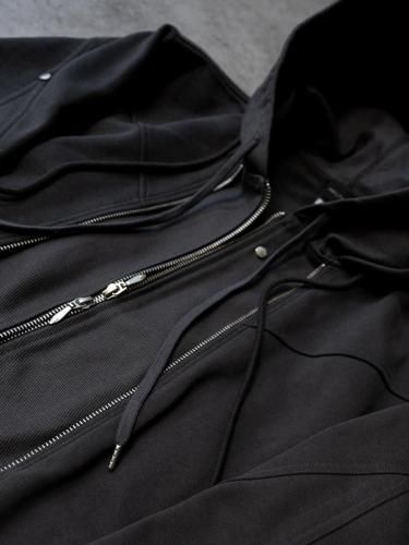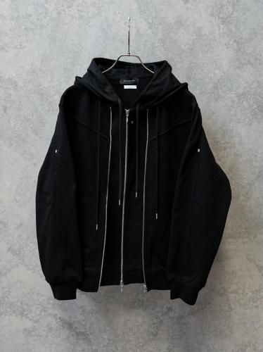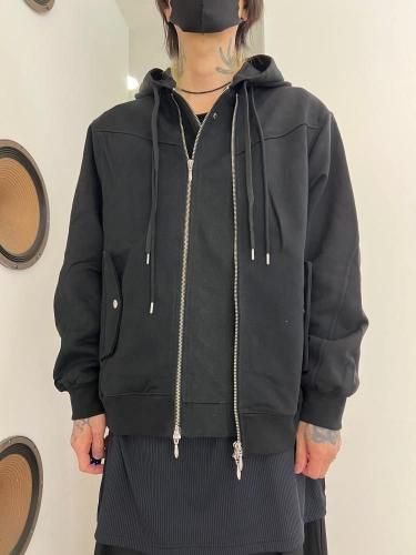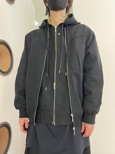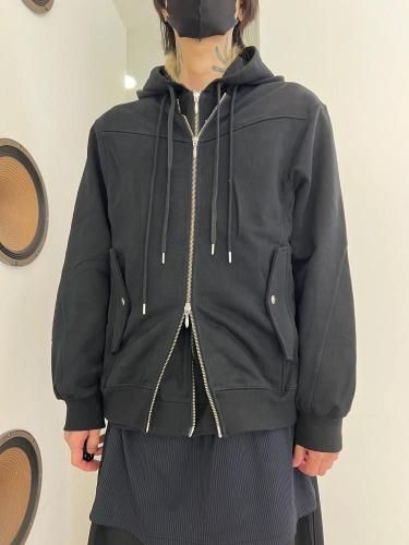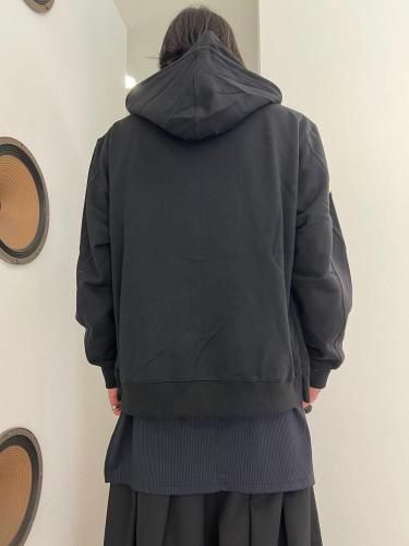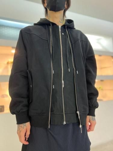 【STAFFコメント】裏毛スウェットのレイヤード部分インナーはダック素材使用したフーディー。ダック素材はしっかりとした厚手の素材でアウター感覚で着用可能。フロントはダブルジップで裏毛スウェットのファスナーとダック素材のファスナーでも開閉可能で留め方で様々な表情に変化可能。