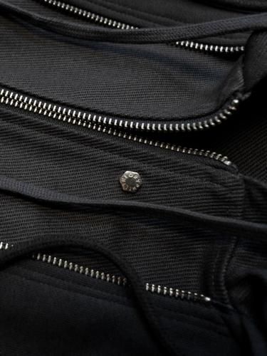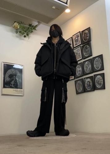 フロントのジップの留め方はライダース風を始め幅広い見せ方が可能です。