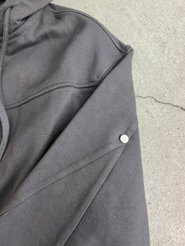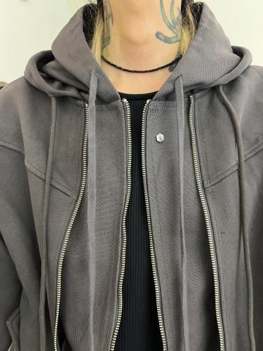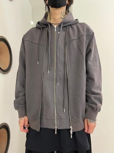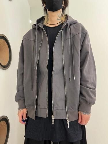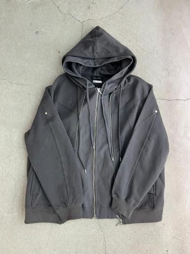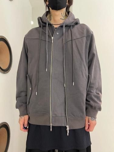 【STAFFコメント】裏毛スウェットのレイヤード部分インナーはダック素材使用したフーディー。ダック素材はしっかりとした厚手の素材でアウター感覚で着用可能。フロントはダブルジップで裏毛スウェットのファスナーとダック素材のファスナーでも開閉可能で留め方で様々な表情に変化可能。