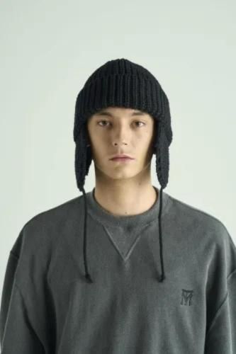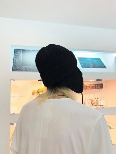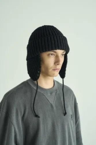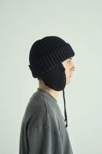 帽子ブランド「CA4LA」と作成した、耳当て付きニットキャップ。