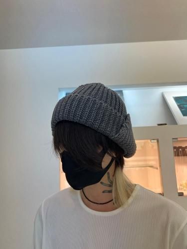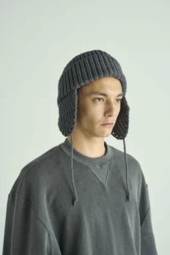 帽子ブランド「CA4LA」と作成した、耳当て付きニットキャップ。