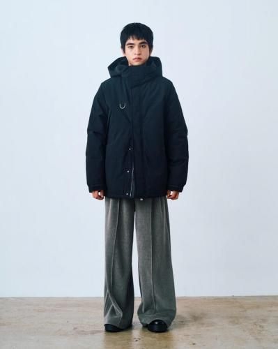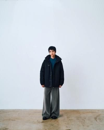 ナイロンのようなハリ感を出しながらも、着用時にストレスを感じさせないしなやかさのバランスに拘ったハイカウントポリエステル素材を使用。