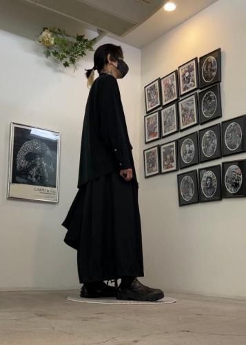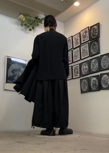 継続展開となる、prasthanaの創作におけるキーワードの一つに据えている「和装」から抽出した袴モチーフのパンツをベースに、過去にないビッグシルエットとバルーンパンツの要素(裾紐)を付加し、作成しました。