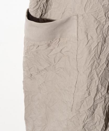 今季glambがテーマとして掲げる“Shadow of the Wind”の世界観を陰影あるテキスタイルに閉じ込めたスプリングコート、Crinkle Shawl Collar Coat。身生地に用いたのは生地段階でキャッチワッシャー加工によって皺の表情を刻んだ薄手のツイル生地。身幅に程よくゆとりを持たせた膝丈のボディは、首元をショールカラーでまとめて優雅なムードに。ポケットはカジュアルな印象のアウトポケット、仕立ては芯や裏地を省いたアンコンとすることで、季節感を捉えたイージーな1着としてまとめています。