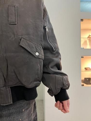 顔料染めによって生まれる、ビンテージのような自然なフェード感が特徴で、程よい光沢とソフトな肌触りを兼ね備えています。着込むほどに風合いが増し、経年変化を楽しめる一着です。伝統的なMA-1の無骨なシルエットをベースに、上品な素材感を加えることで、カジュアルからモードなスタイルまで幅広く対応。定番のミリタリーウェアを現代的に再解釈した、洗練されたアイテムです。
